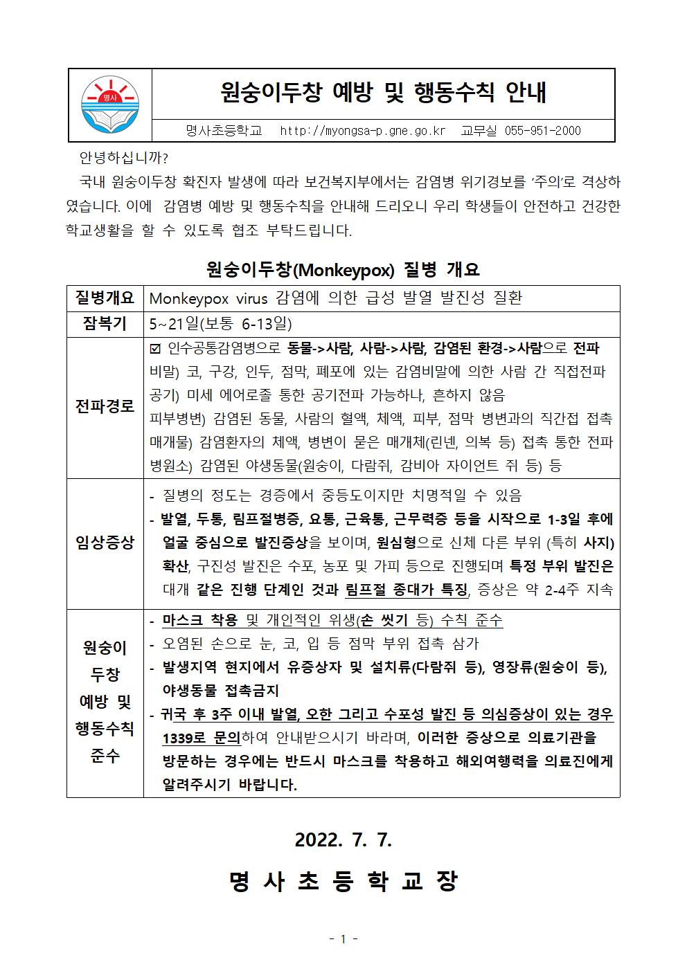 원숭이두창 예방 및 행동수칙 안내