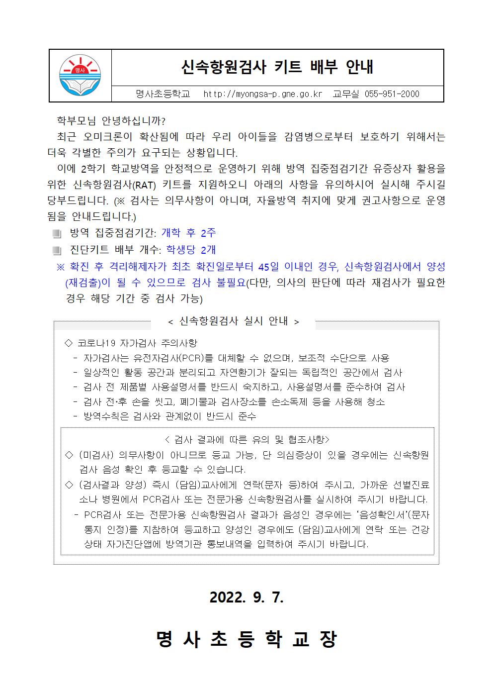 신속항원검사 키트 배부 안내