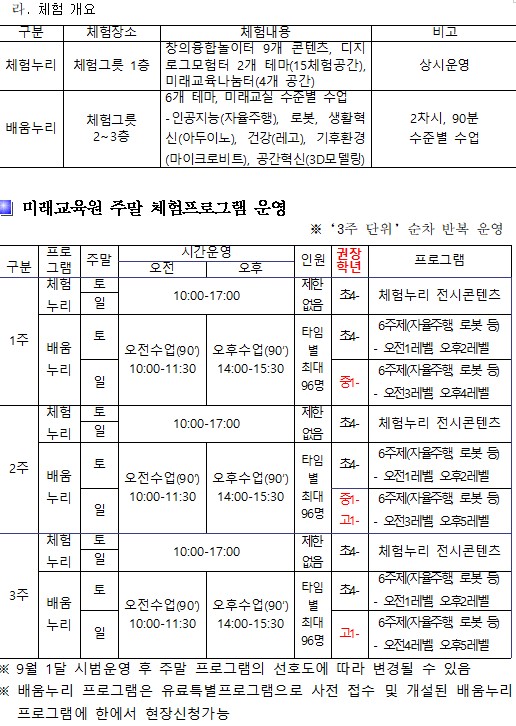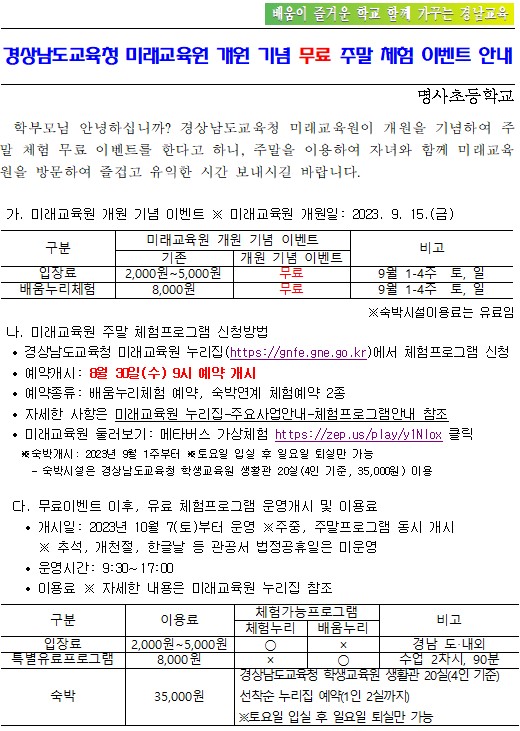 경상남도교육청 미래교육원 개원 기념 무료 주말 체험 이벤트 안내